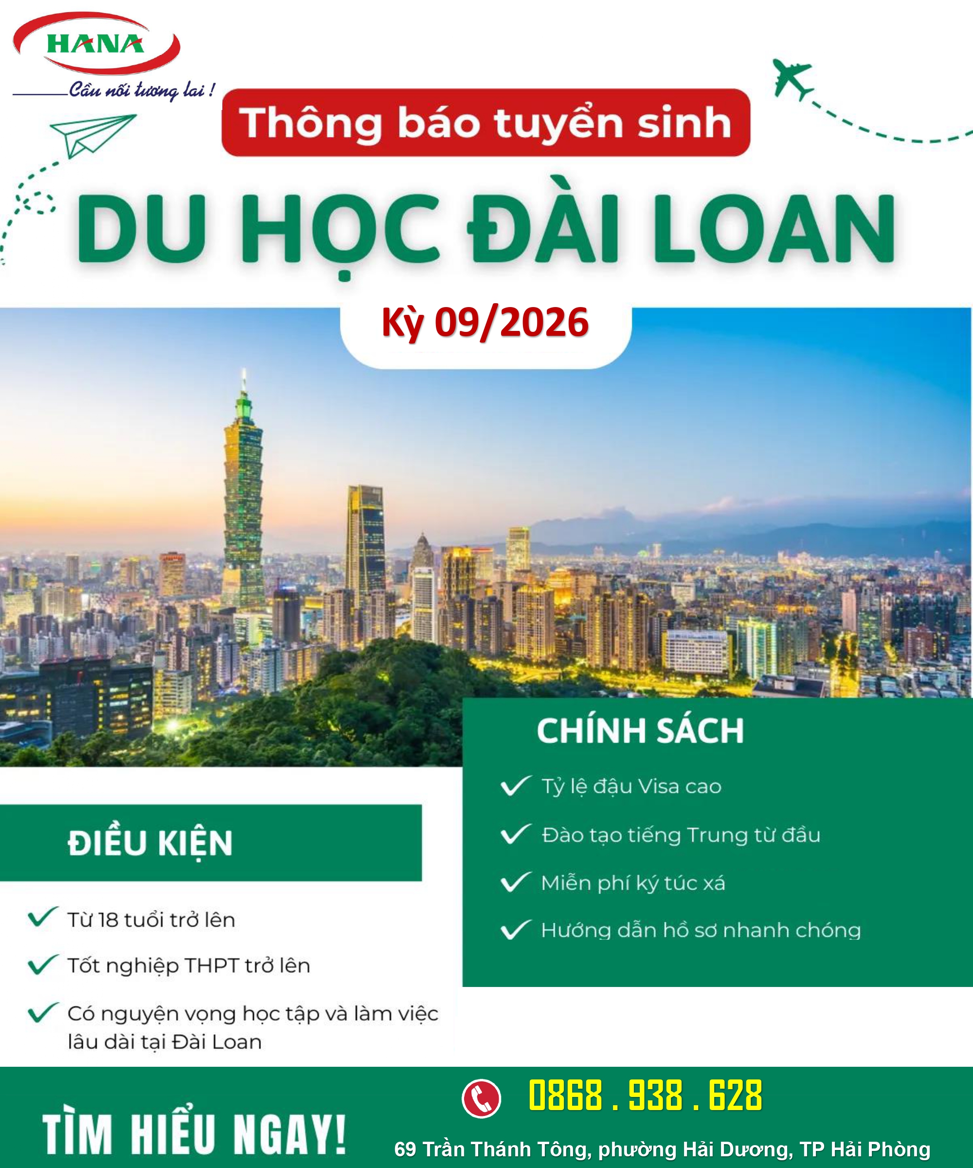 🚀 Du học Đài Loan – Mở lối tương lai cùng HANA
